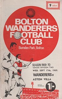 Match: Bolton Wanderers v Aston Villa Competition: League Division 2 Date: 17-09-1969 Comments: Rating: 3 Condition: Rusty staple, slight marking on cover Weight in grams: 40