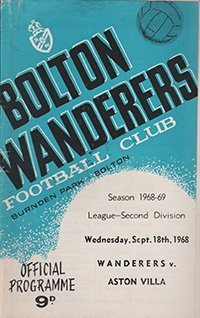 Match: Bolton Wanderers v Aston Villa Competition: League Division 2 Date: 18-09-1968 Comments: Rating: 3 Condition: Light creasing on spine,slight mark on top corner Weight in grams: 40