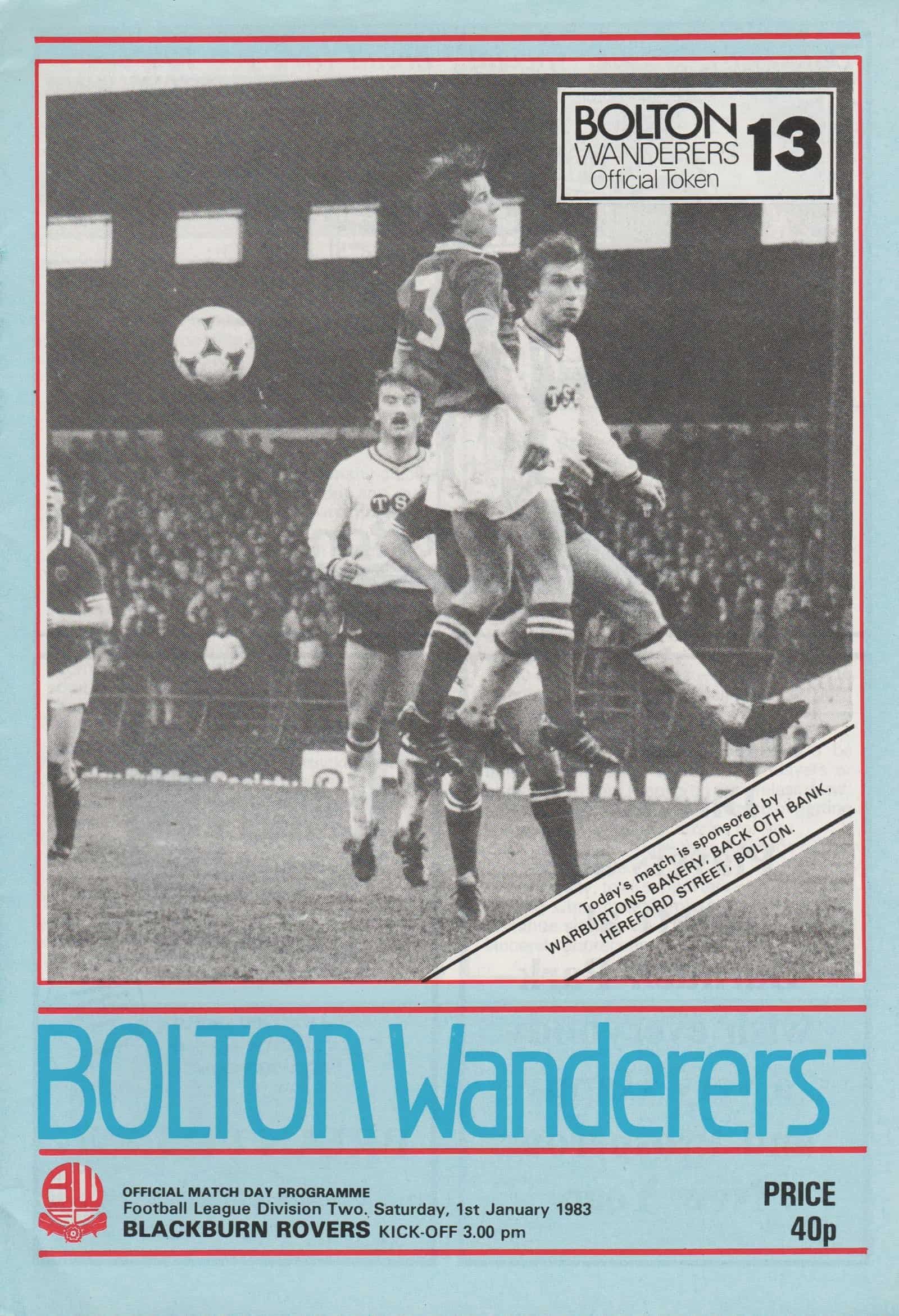Match: Bolton Wanderers v Blackburn Rovers Competition: League Division 2 Date: 01-Jan-1983 Comments: Rating: 4 Condition: Very good Weight in grams: 120