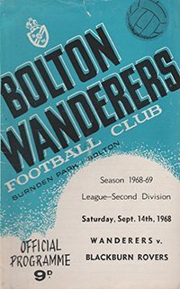 Match: Bolton Wanderers v Blackburn Rovers Competition: League Division 2 Date: 14-09-1968 Comments: Rating: 3 Condition: Tear on cover Weight in grams: 40