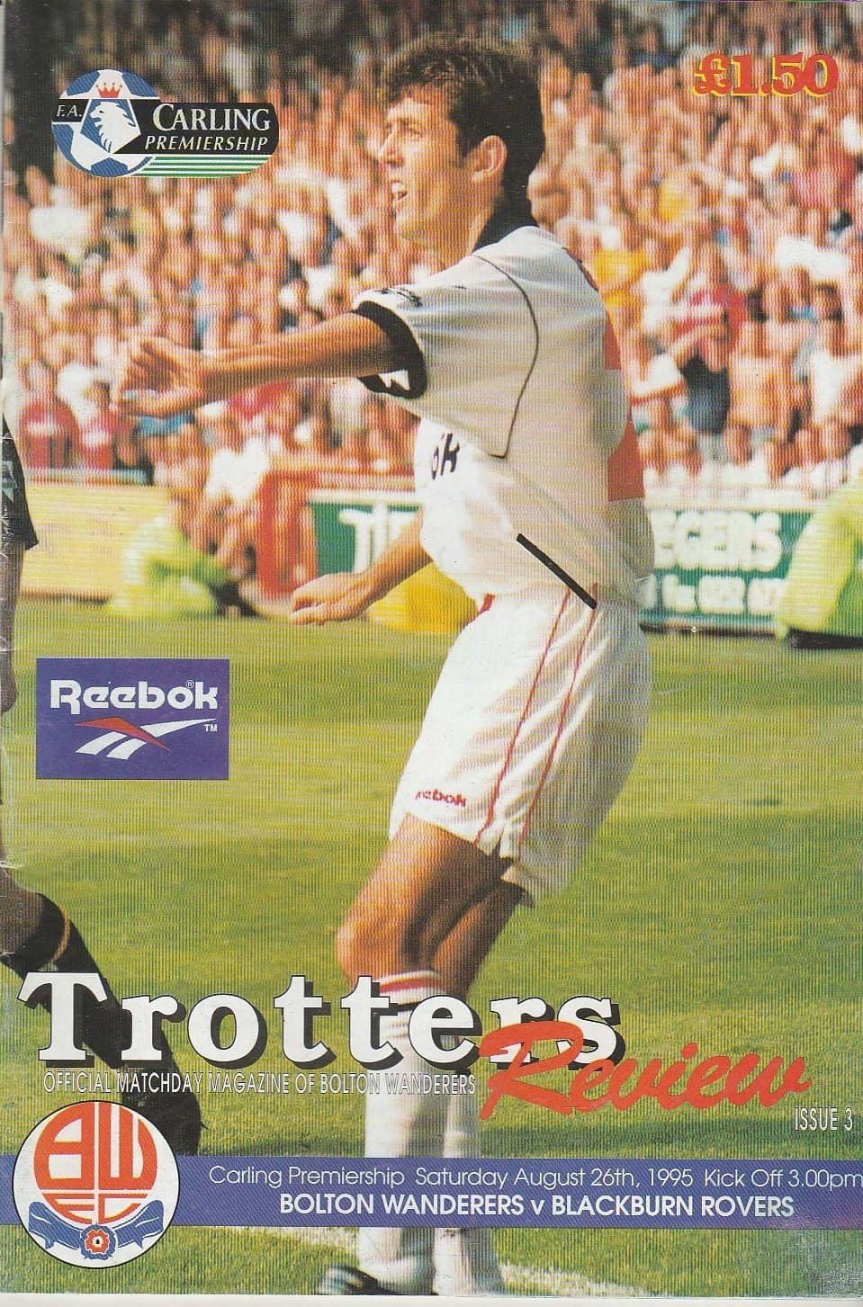Match: Bolton Wanderers v Blackburn Rovers Competition: Premier League Date: 26-Aug-1995 Comments: Rating: 4 Condition: Good Weight in grams:140