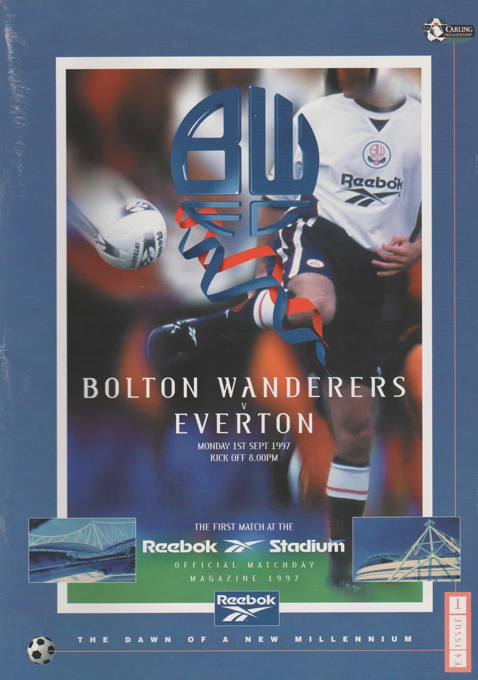 Match: Bolton Wanderers v Everton Competition: Premier League Date: 01-Sep-1997 Comments: Blue edition Rating: 4 Condition: Slight scratches on cover Weight in grams: 200
