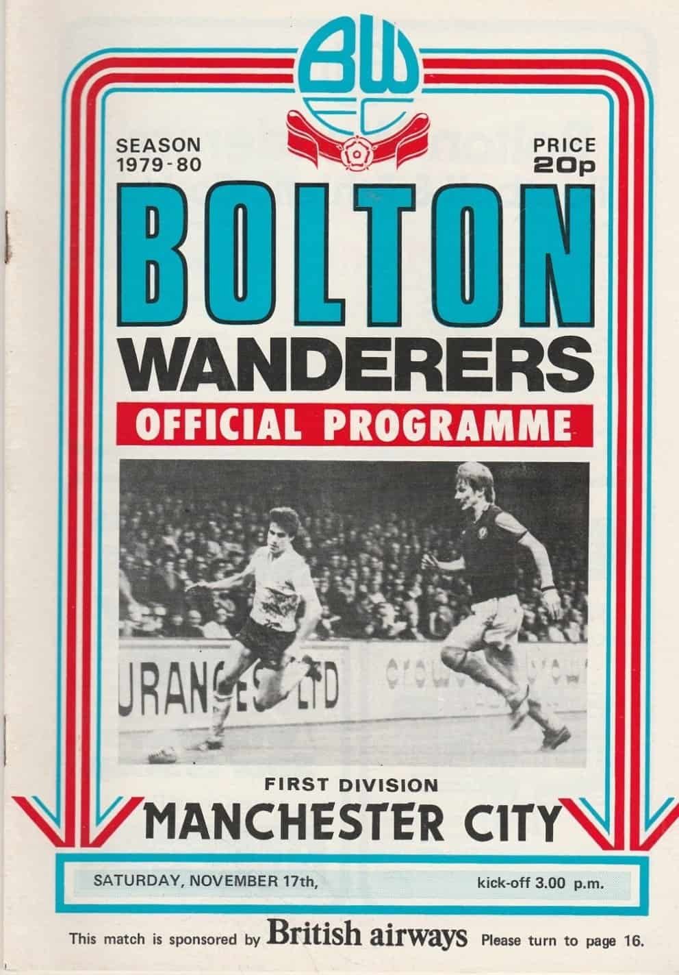 Match: Bolton Wanderers v Manchester City Competition: League Division 1 Date: 17-Nov-1979 Comments: Rating: 4 Condition: Very good Weight in grams: 120
