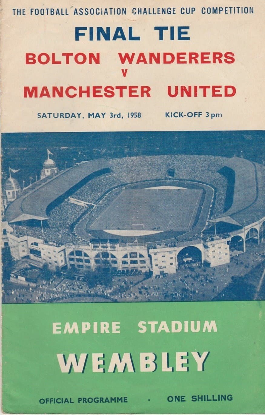 Match: Bolton Wanderers v Manchester United Competition: FA Cup Final Date: 03-May-1958 Comments: Rating: 3 Condition: Fold, pin hole, mark on back Weight in grams: 60