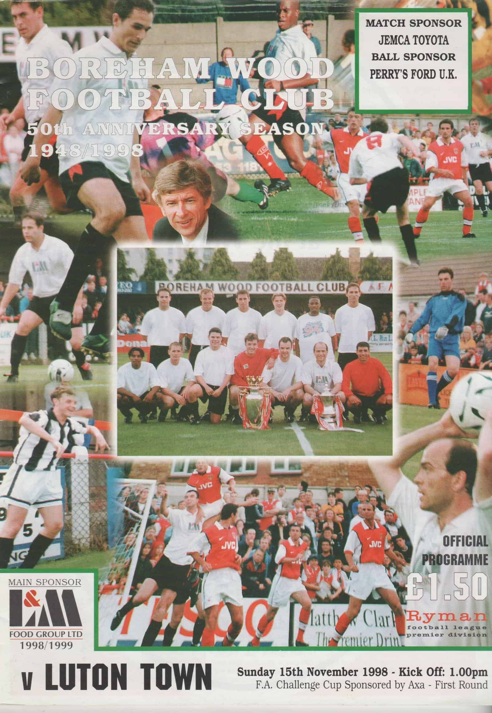 Match: Boreham Wood v Luton Town Competition: FA Cup 1st Round Date: 15-Nov-1998 Comments: Rating: 4 Condition: Very good Weight in grams: 120