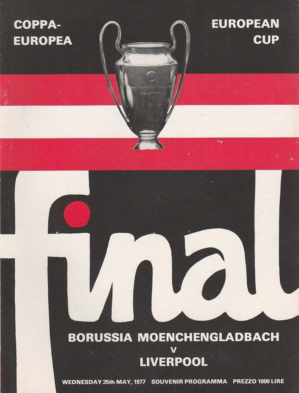 Match: Borussia Monchengladbach v Liverpool Competition: European Cup Final Date: 25-May-1977 Comments: REPRINT Rating: 4 Condition: Score on back Weight in grams: 80
