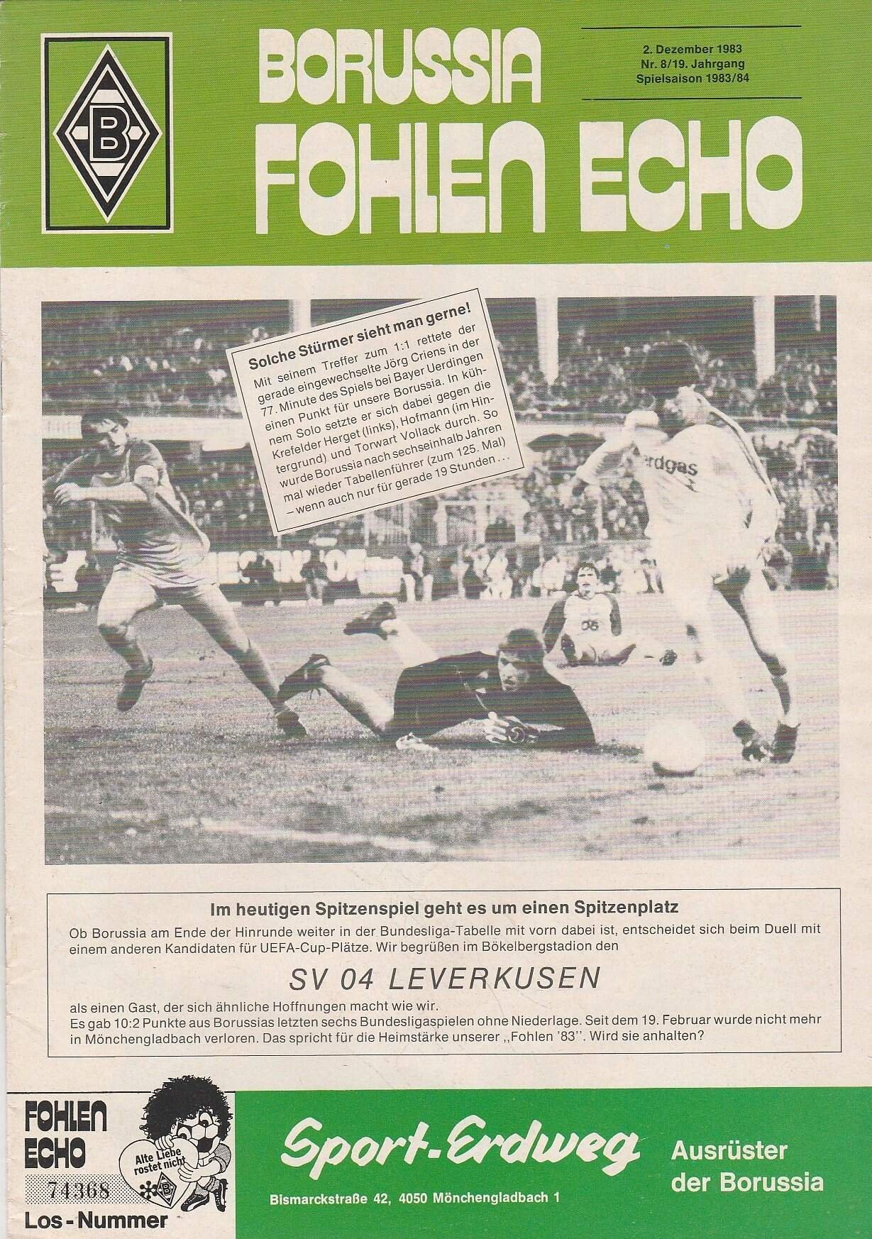 Match: Borussia Monchengladbach v Bayer Leverkusen Competition: Bundesliga Date: 02-Dec-1983 Comments: Rating: 4 Condition: Very good Weight in grams: 140