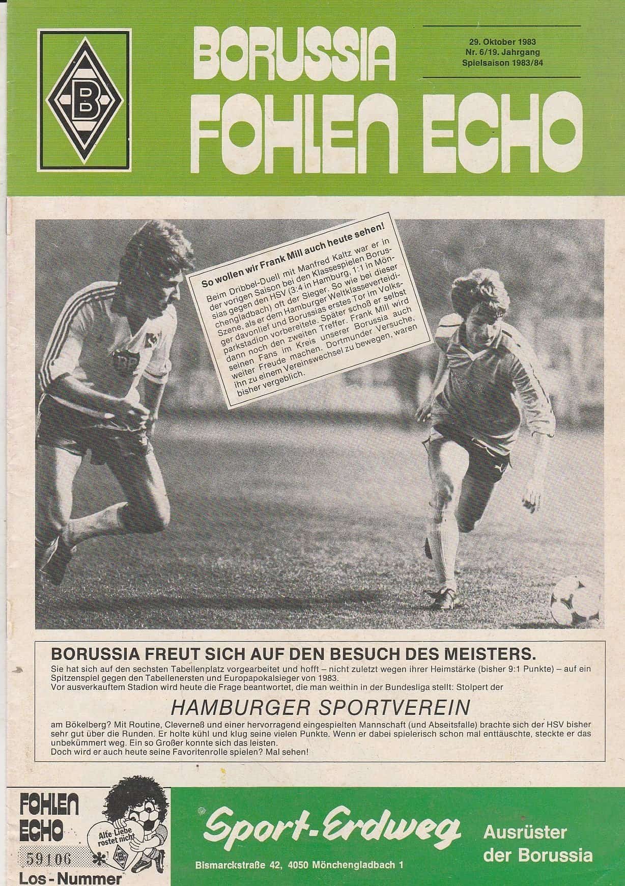 Match: Borussia Monchengladbach v HSV Hamburg Competition: Bundesliga Date: 29-Oct-1983 Comments: Rating: 4 Condition: Very good Weight in grams: 140