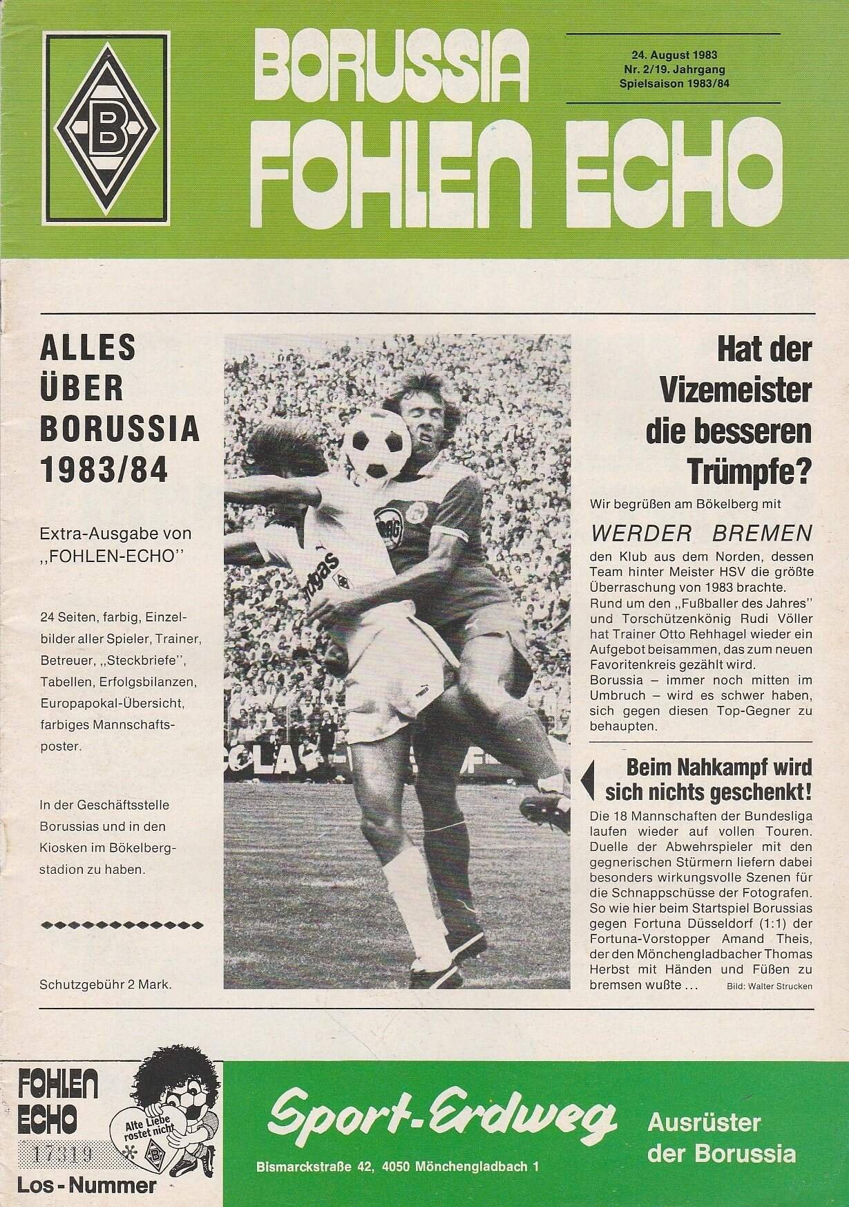 Match: Borussia Monchengladbach v Werder Bremen Competition: Bundesliga Date: 24-Aug-1983 Comments: Rating: 4 Condition: Very good Weight in grams: 140
