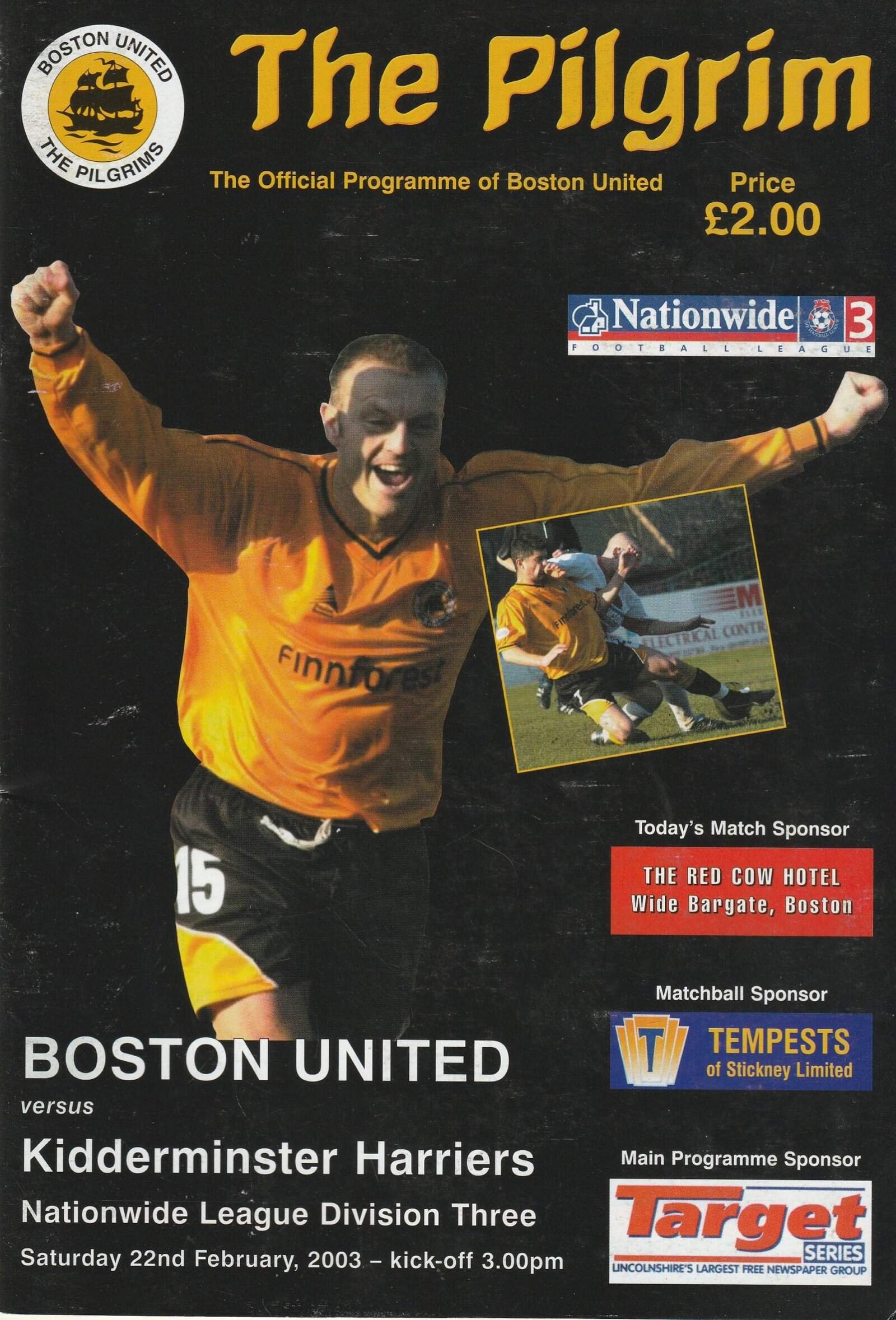 Match: Boston United v Kidderminster Harriers Competition: League Division 3 Date: 22-Feb-2003 Comments: Rating: 4 Condition: Very good Weight in grams: 160