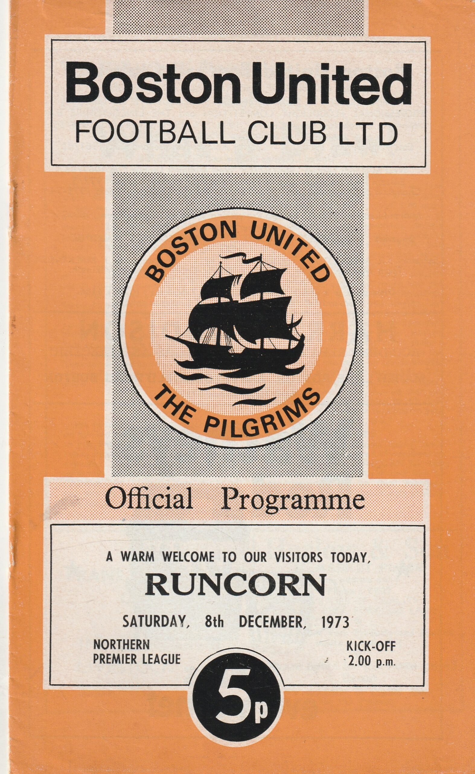 Match: Boston United v Runcorn Competition: Northern Premier League Date: 08-Dec-1973 Comments: Rating: 4 Condition: Very good Weight in grams: 100