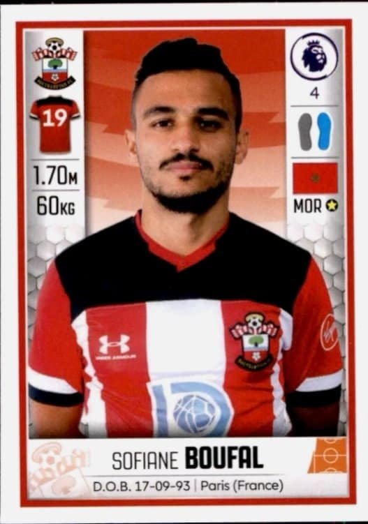 Title: Boufal Sofiane – 507 Club: Southampton Player: Sofiane Boufal Collection number: Merlin Premier League 2020 – 507 Rating: 4 Condition: Very good Weight in grams: 10