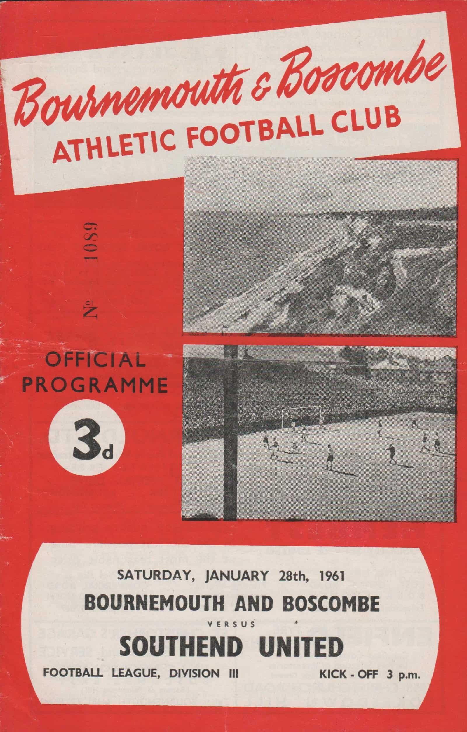 Match: Bournemouth & Boscombe Athletic v Southend United Competition: League Division 4 Date: 28-Jan-1961 Comments: Rating: 4 Condition: Very good Weight in grams: 60