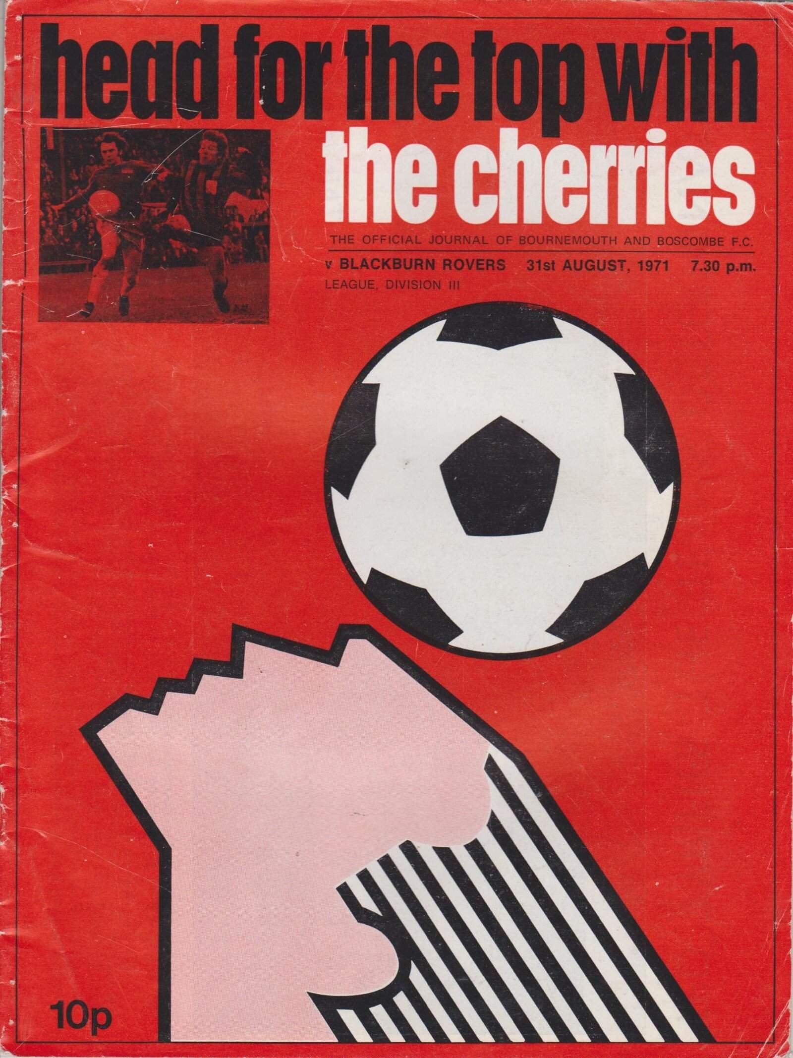 Match: Bournemouth & Boscombe v Blackburn Rovers Competition: League Division 3 Date: 31-Aug-1971 Comments: Rating: 3 Condition: Slight mark on face, rippling on back page Weight in grams: 80