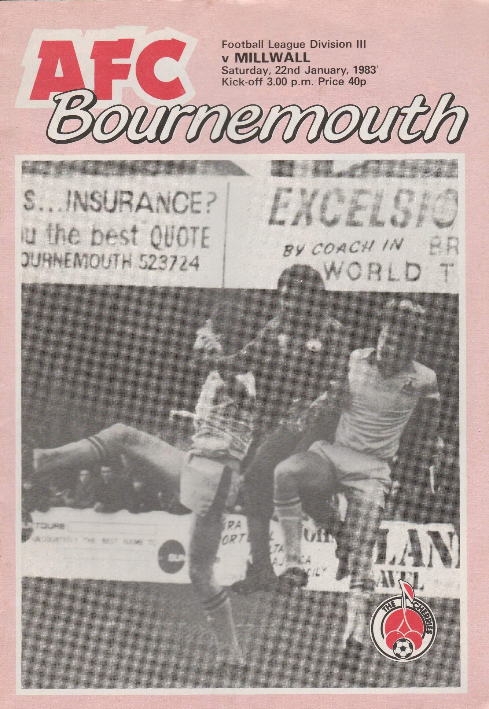Match: Bournemouth v Millwall Competition: League Division 3 Date: 22-Jan-1983 Comments: Rating: 3 Condition: Slight fold Weight in grams: 80