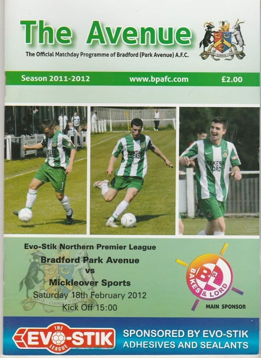 Match: Bradford Park Avenue v Mickleover Sports Competition: Northern Premier League Date: 18-Feb-2012 Comments: Rating: 4 Condition: Very good Weight in grams: 120