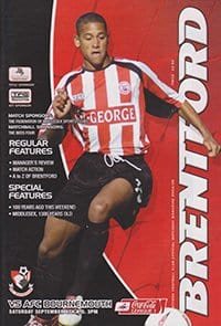 Match: Brentford v AFC Bournemouth Competition: League 1 Date: 04-09-2004 Comments: Rating: 5 Condition: Excellent, includes press cutting Weight in grams: 160