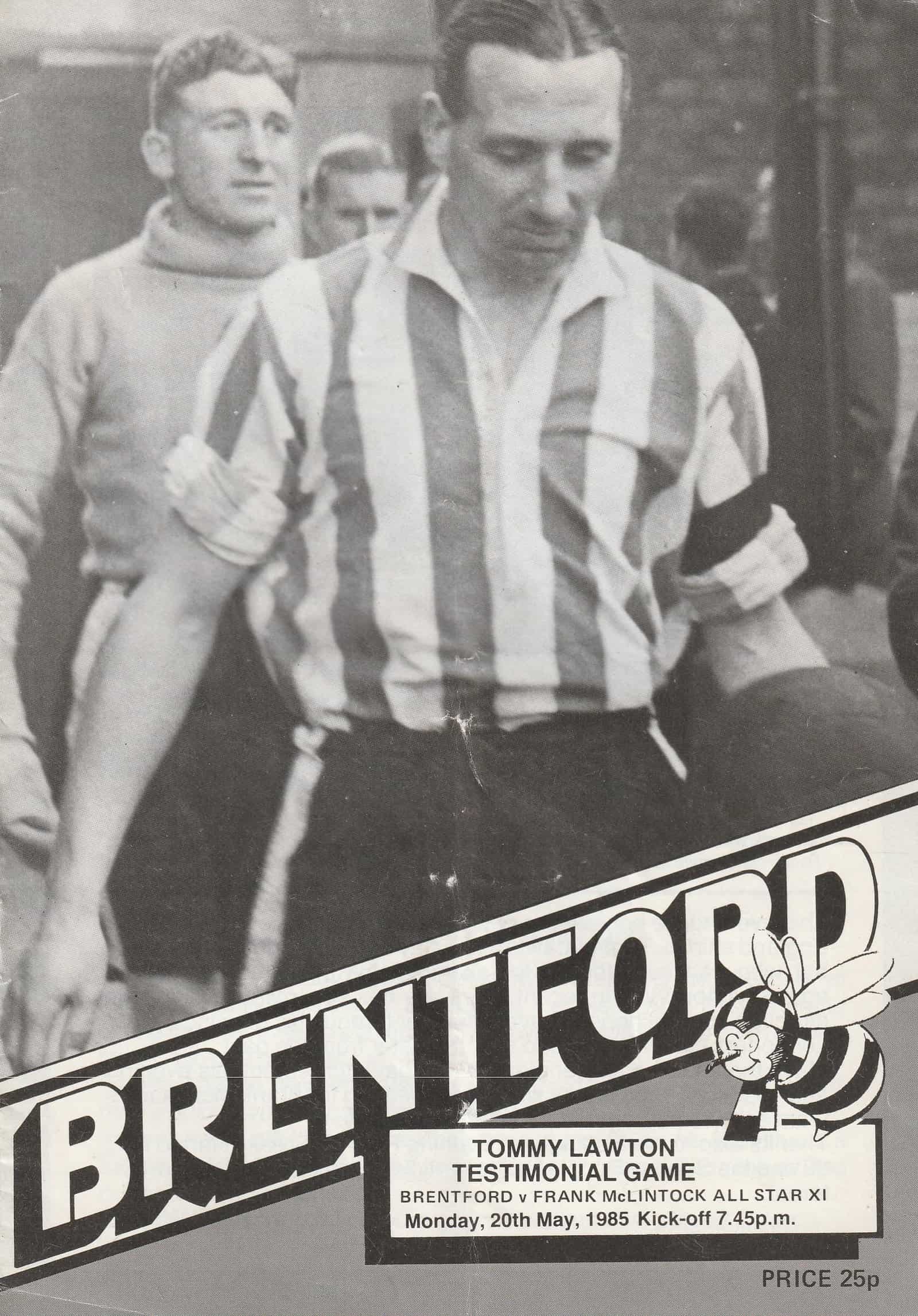 Match: Brentford v Frank McLintock All Star XI Competition: Friendly Date: 20-May-1985 Comments: Tommy Lawton Testimonial Match Rating: 4 Condition: Very good Weight in grams: 80
