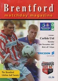 Match: Brentford v Carlisle United Competition: League Division 2 Date: 04-11-1997 Comments: Rating: 4 Condition: Slight fold Weight in grams: 100