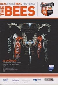 Match: Brentford v Everton Competition: Carling Cup 3rd Round Date: 21-09-2010 Comments: Rating: 5 Condition: Excellent Weight in grams: 200