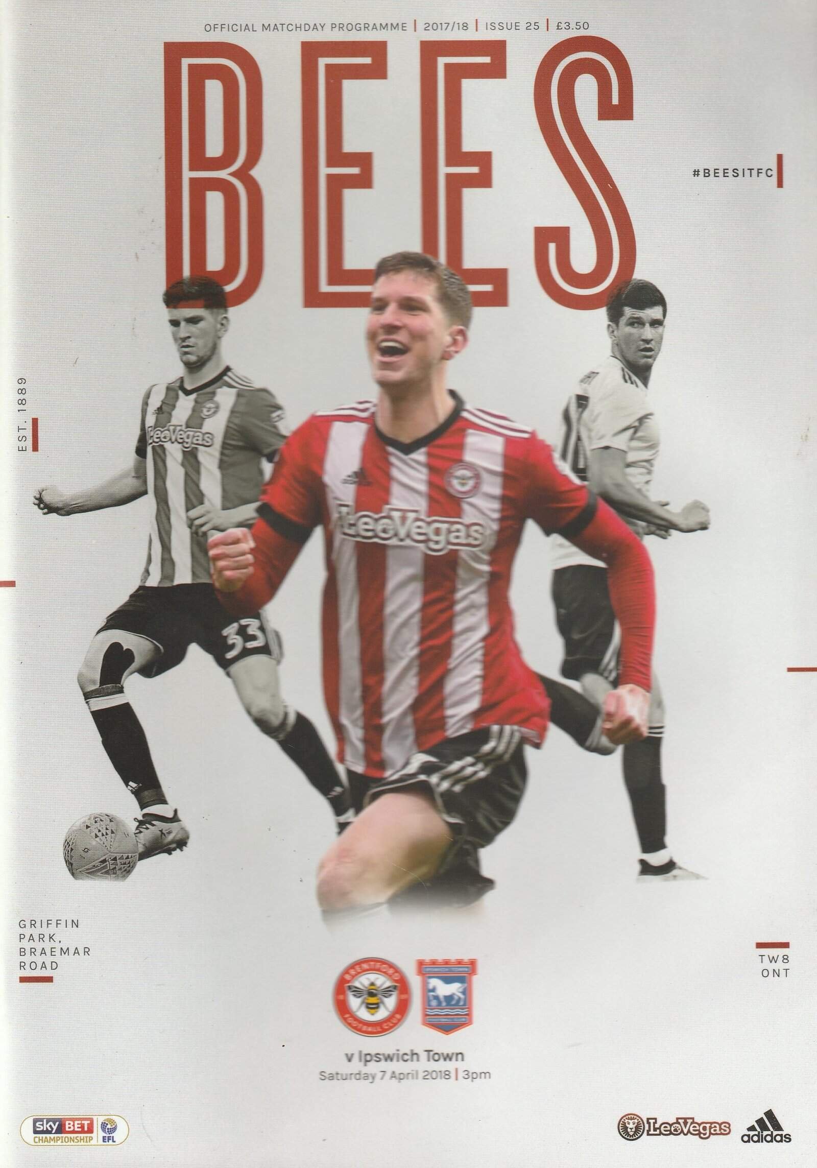 Match: Brentford v Ipswich Town Competition: Sky Bet Championship Date: 07-Apr-2018 Comments: Rating: 4 Condition: Very good Weight in grams: 240