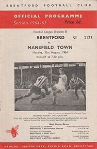 Match: Brentford v Mansfield Town Competition: League Division 3 Date: 31-08-1964 Comments: Rating: 3 Condition: Fold Weight in grams: 40