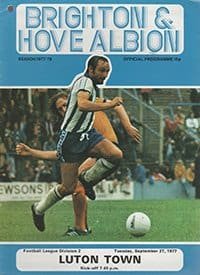 Match: Brighton & Hove Albion v Luton Town Competition: League Division 2 Date: 27-09-1977 Comments: Rating: 3 Condition: Light soiling on back page, slight scuffing on edge of cover Weight in grams: 80