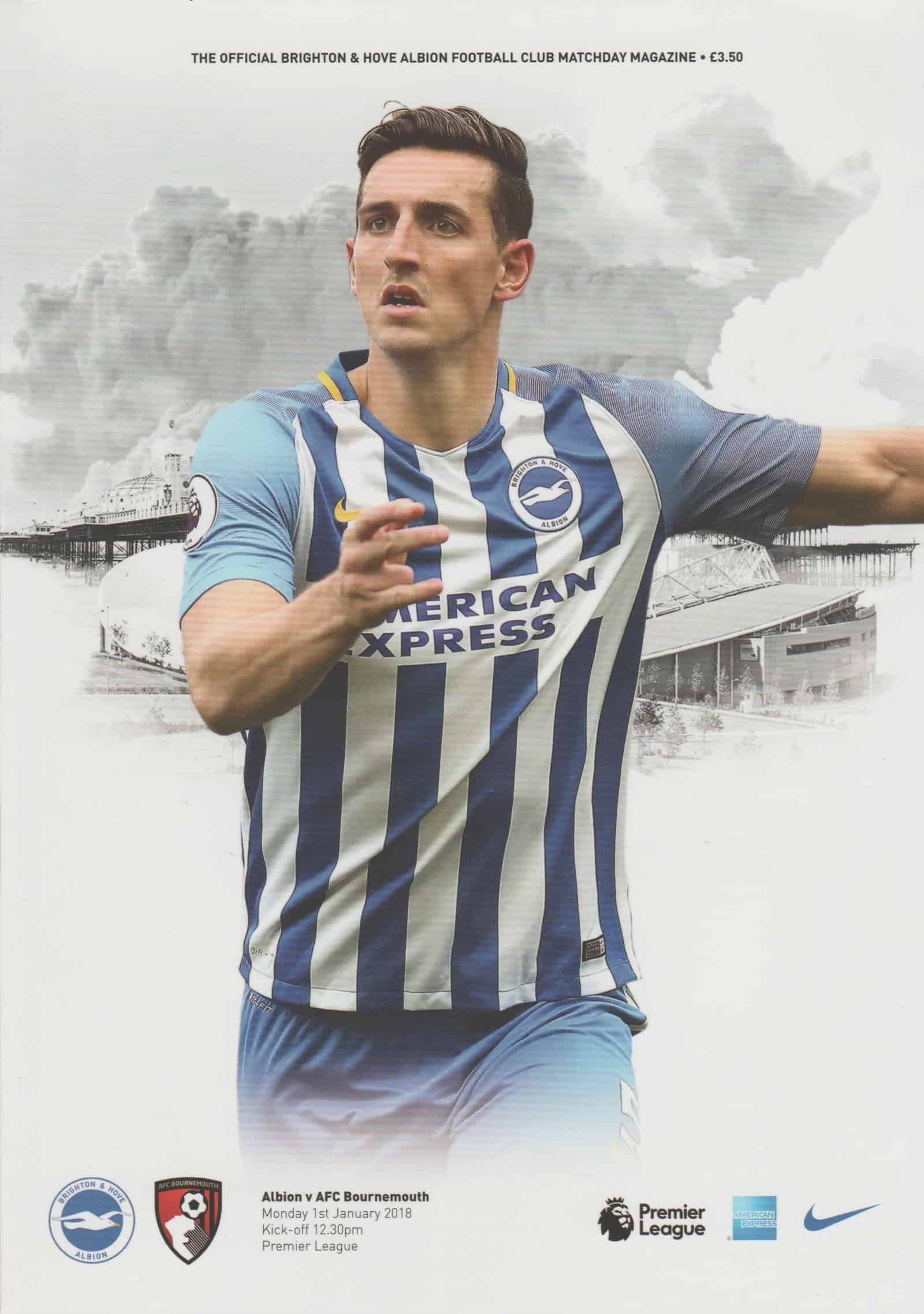 Match: Brighton & Hove Albion v AFC Bournemouth Competition: Premier League Date: 01-Jan-2018 Comments: Rating: 4 Condition: Very good Weight in grams: 260