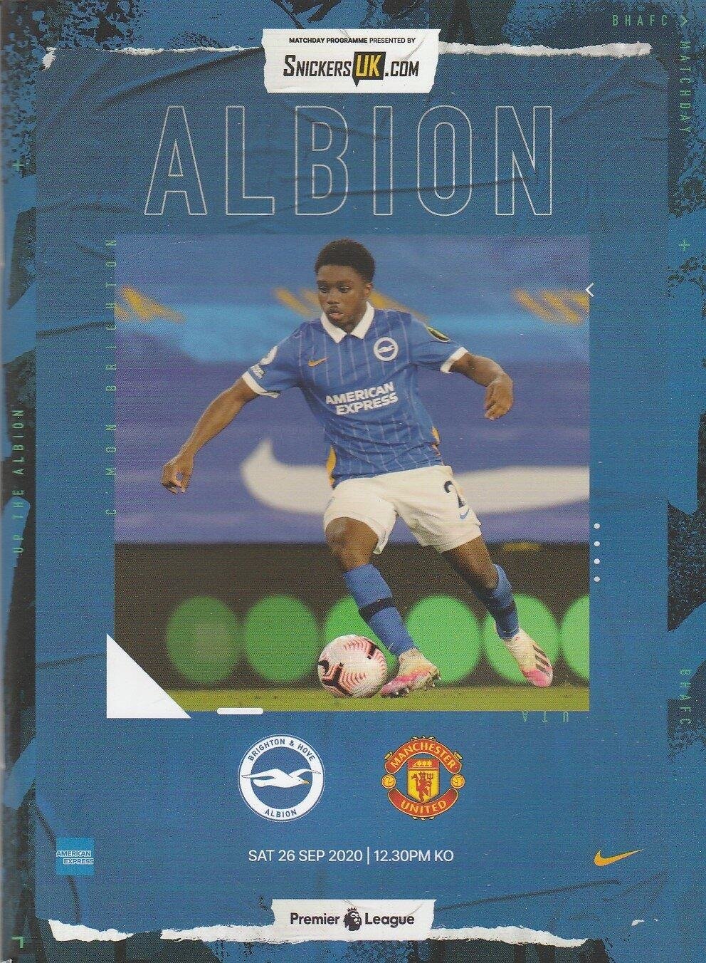 Match: Brighton & Hove Albion v Manchester United Competition: Premier League Date: 26-Sep-2020 Comments: Rating: 4 Condition: Very good Weight in grams: 300