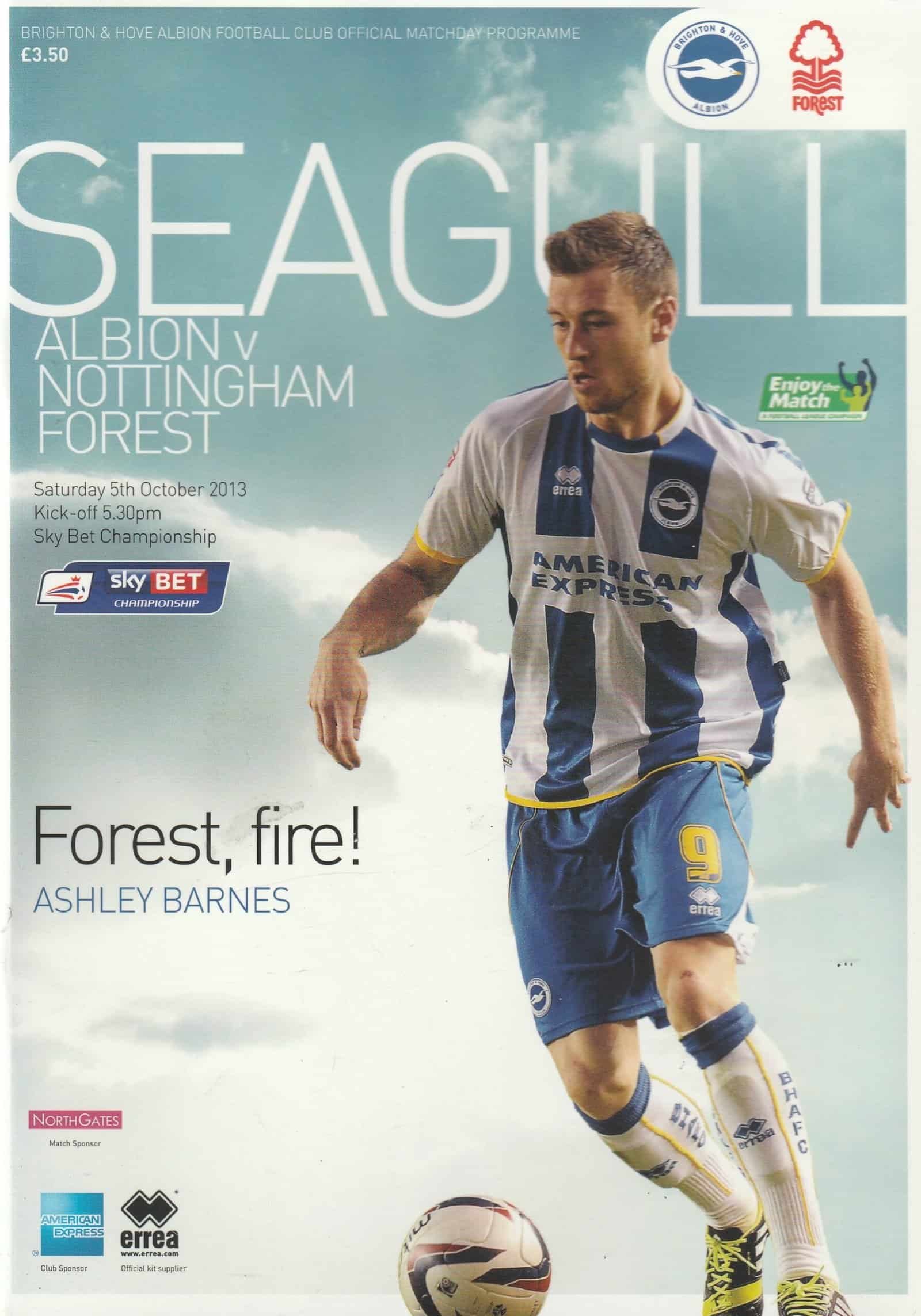 Match: Brighton & Hove Albion v Nottingham Forest Competition: Sky Bet Championship Date: 05-Oct-2013 Comments: Rating: 4 Condition: Very good Weight in grams: 300