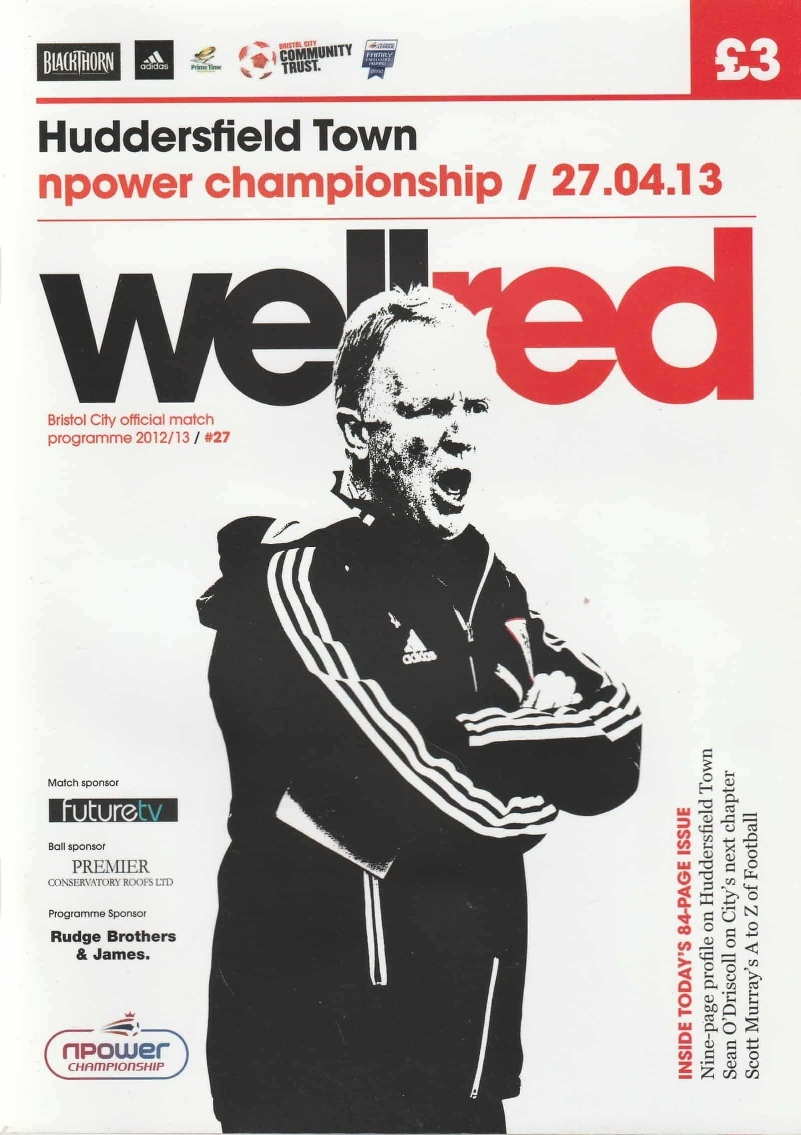 Match: Bristol City v Huddersfield Town Competition: League Championship Date: 27-Apr-2013 Comments: Rating: 4 Condition: Very good Weight in grams: 200