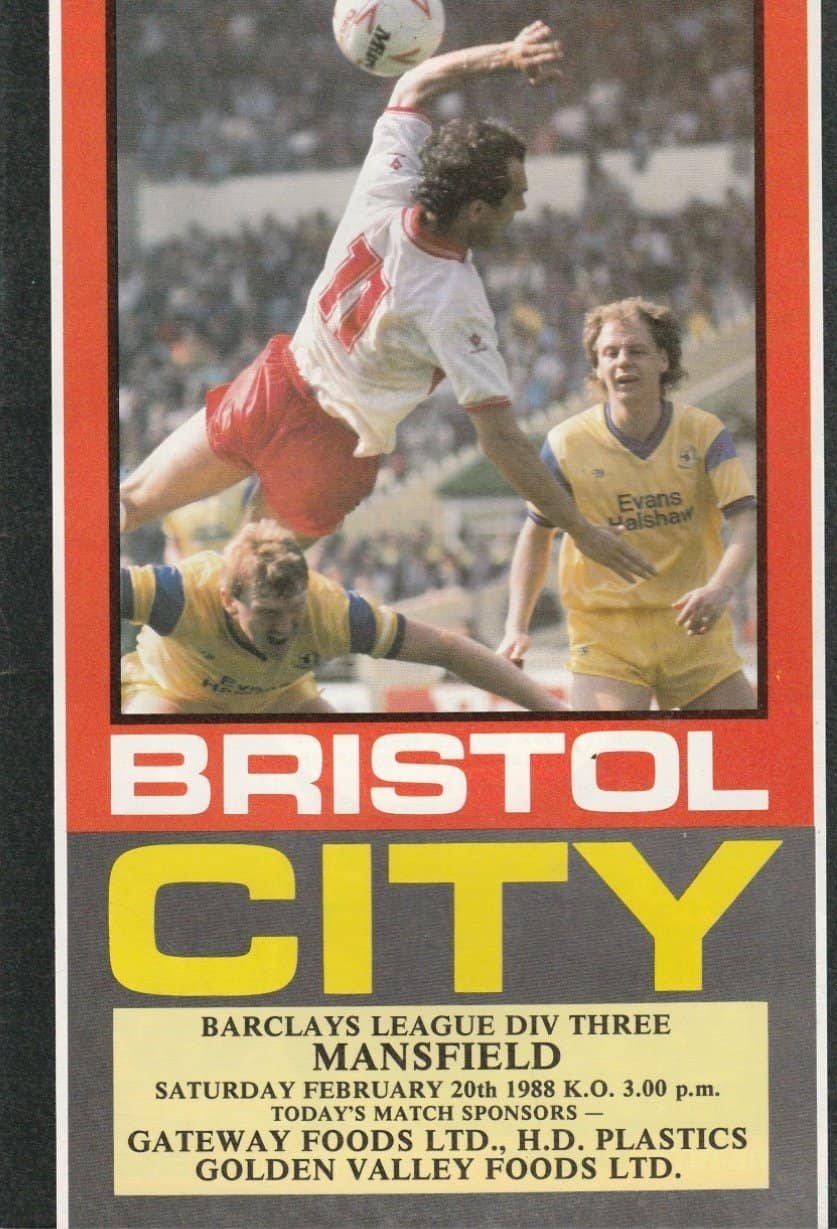 Match: Bristol City v Mansfield Town Competition: League Division 3 Date: 20-Feb-1988 Comments: Rating: 4 Condition: Very good Weight in grams: 80
