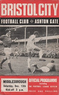 Match: Bristol City v Middlesbrough Competition: League Division 2 Date: 13-12-1969 Comments: Rating: 3 Condition: Soiling and creasing on back Weight in grams: 80