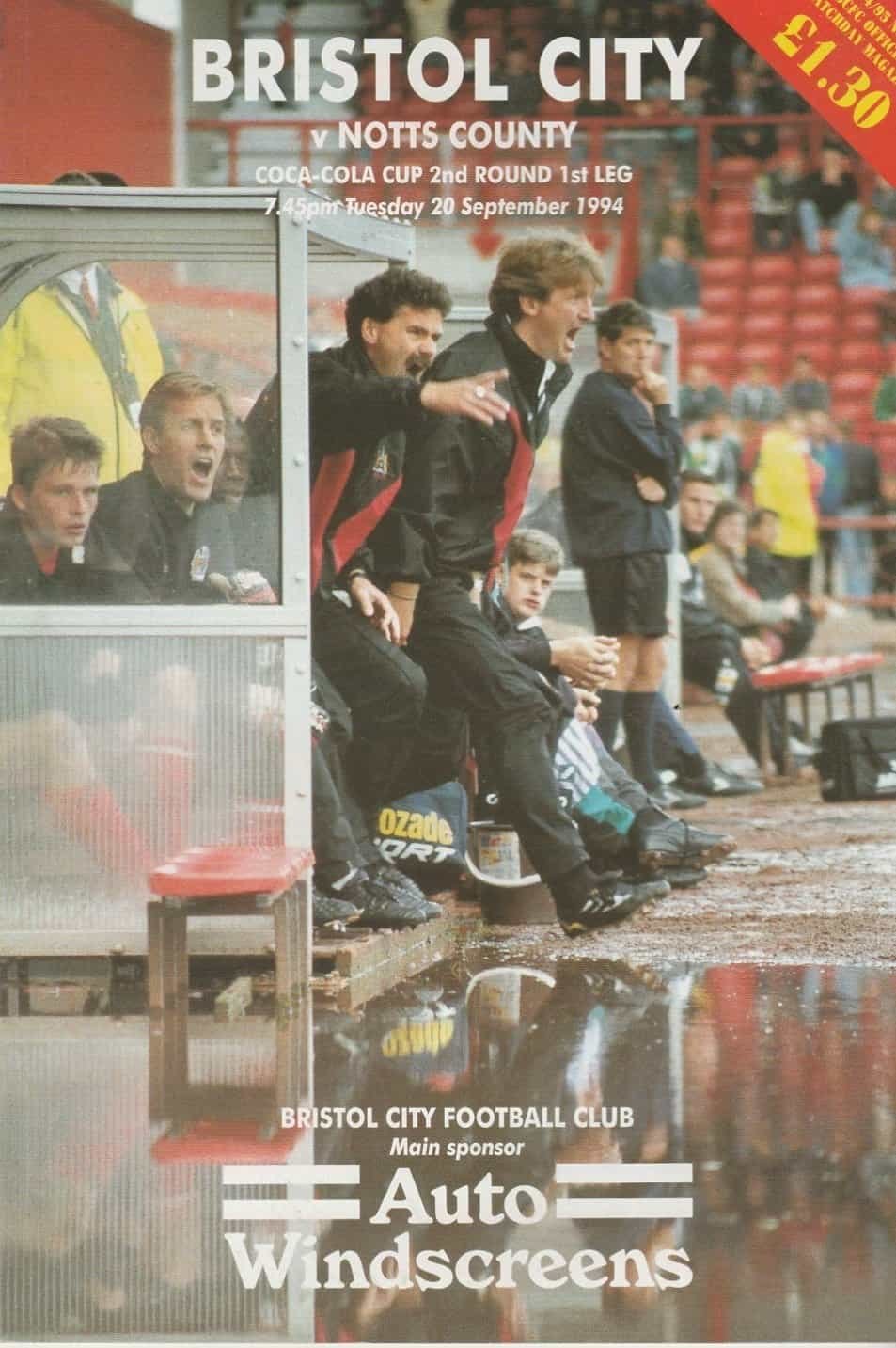 Match: Bristol City v Notts County Competition: League Cup 2nd Round 1st leg Date: 20-Sep-1994 Comments: Rating: 4 Condition: Very good Weight in grams: 100