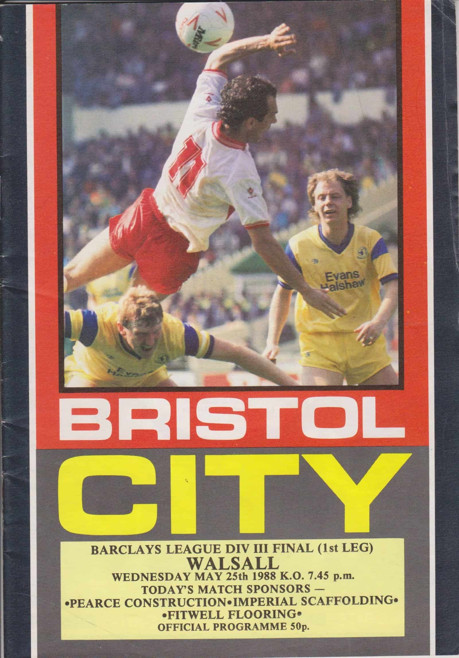 Match: Bristol City v Walsall Competition: League Division 3 Play off Final 1st leg Date: 25-May-1988 Comments: Includes press cutting Rating: 4 Condition: Good Weight in grams: 80