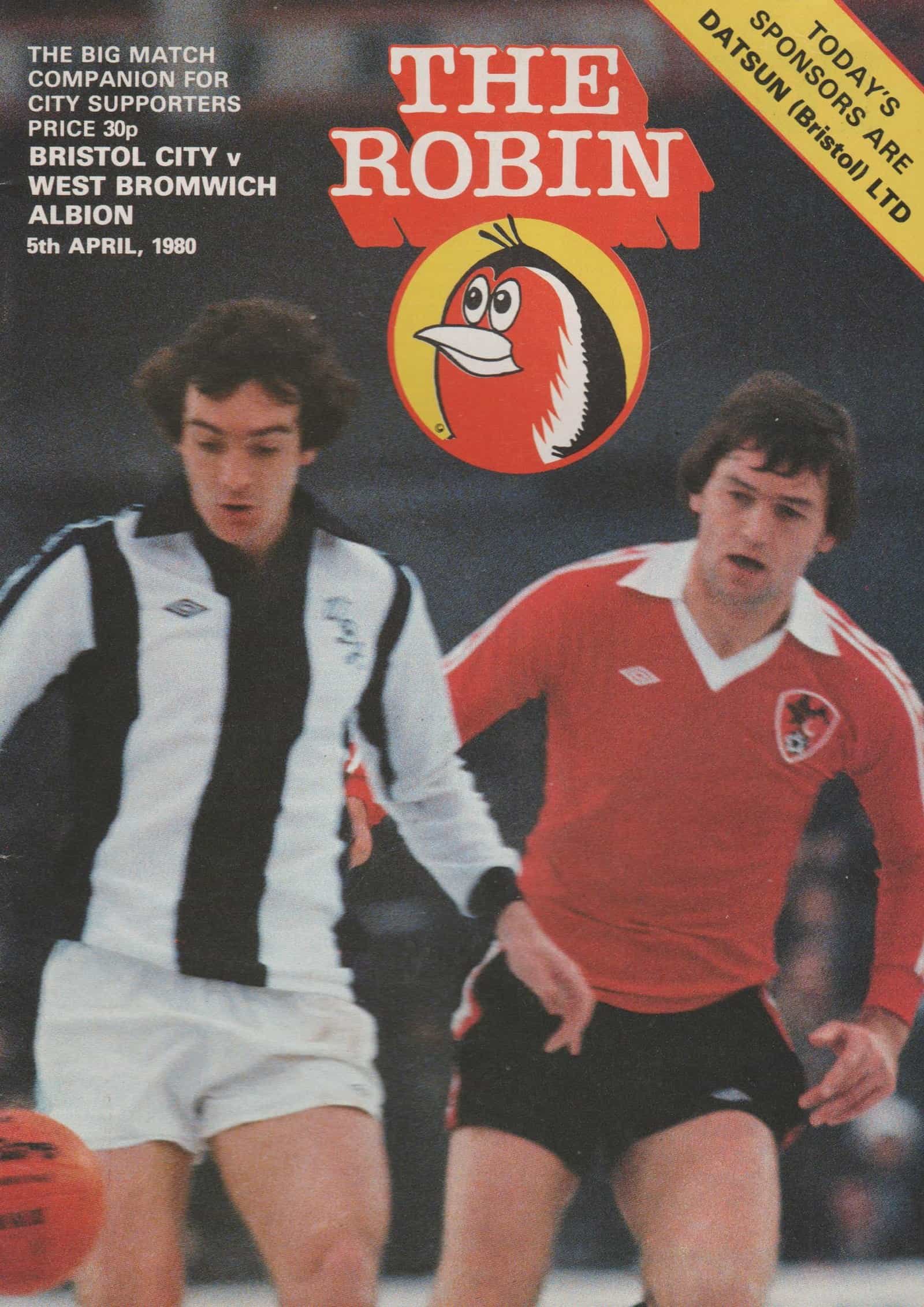 Match: Bristol City v West Bromwich Albion Competition: League Division 1 Date: 05-Apr-1980 Comments: Rating: 4 Condition: Very good Weight in grams: 80