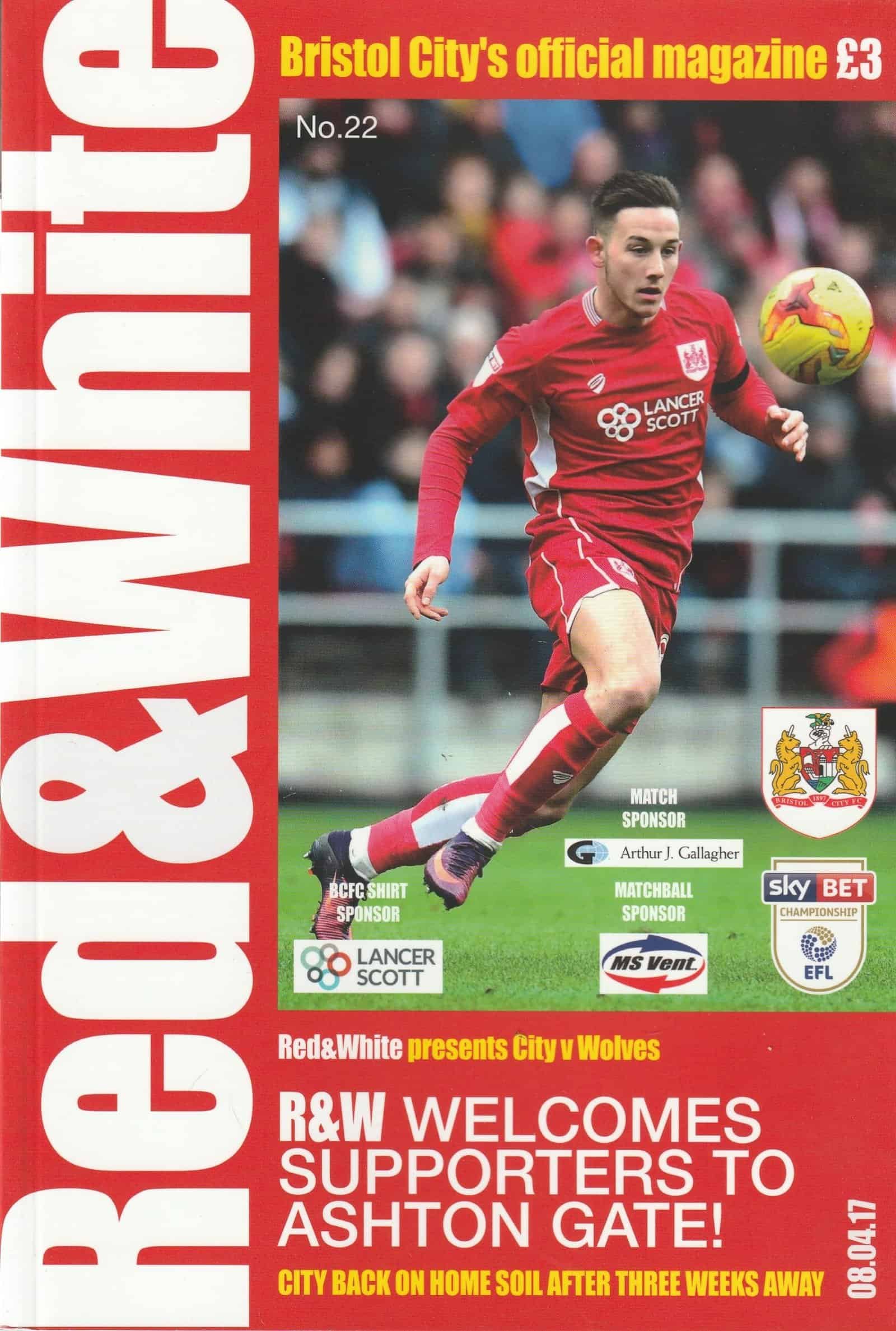 Match: Bristol City v Wolverhampton Wanderers Competition: League Championship Date: 08-Apr-2017 Comments: Rating: 4 Condition: Very good Weight in grams: 200