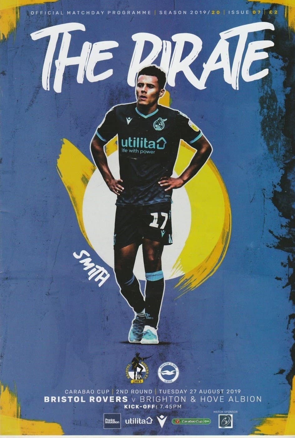 Match: Bristol Rovers v Brighton Hove Albion Competition: Carabao Cup 2nd Round Date: 27-Aug-2019 Comments: Rating: 4 Condition: Very good Weight in grams: 80