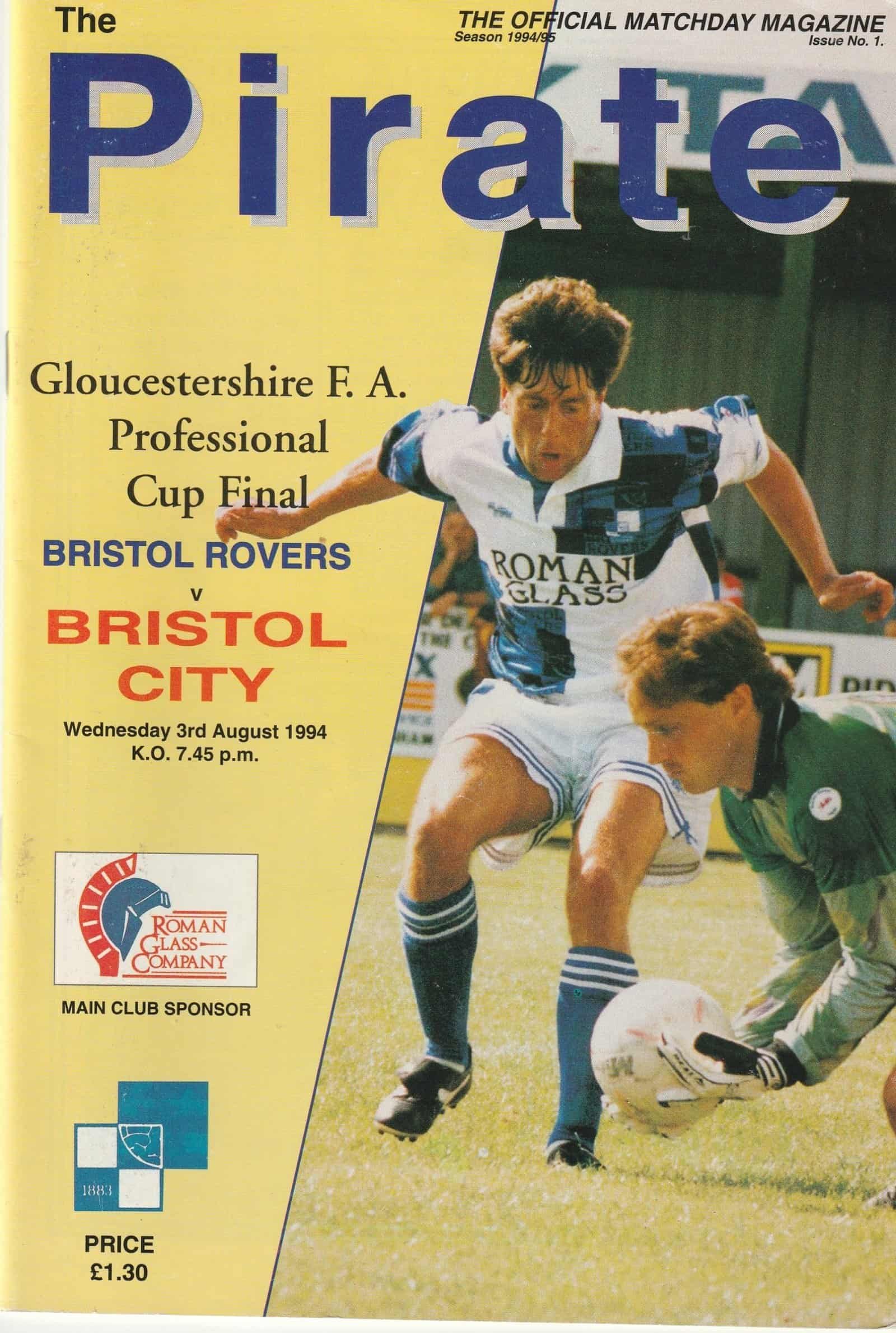 Match: Bristol Rovers v Bristol City Competition: Gloucestershire FA Professional Cup Final Date: 03-Aug-1994 Comments: Rating: 4 Condition: Very good Weight in grams: 160