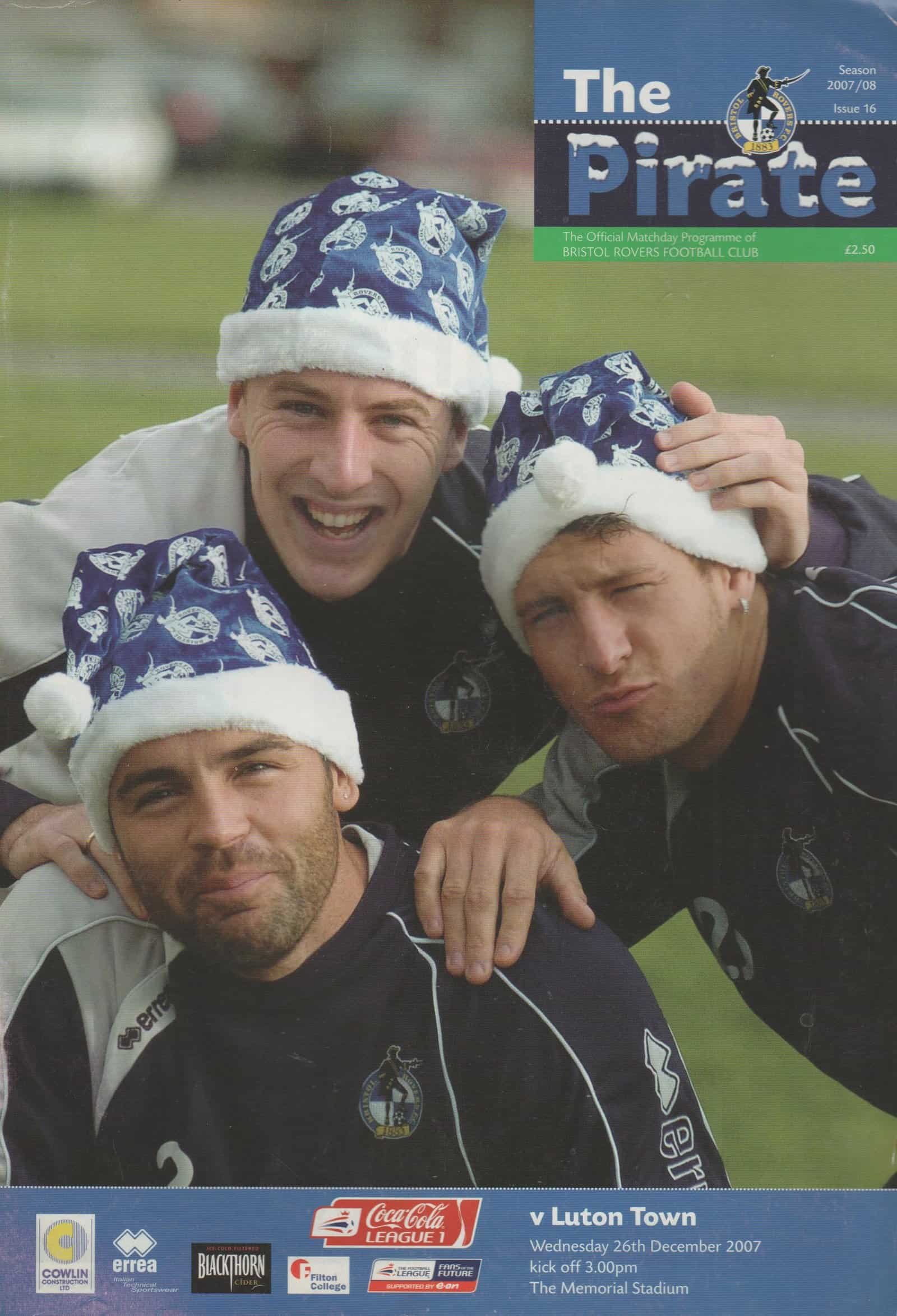 Match: Bristol Rovers v Luton Town Competition: League 1 Date: 26-Dec-2007 Comments: Rating: 3 Condition: Slight corner turn Weight in grams: 140