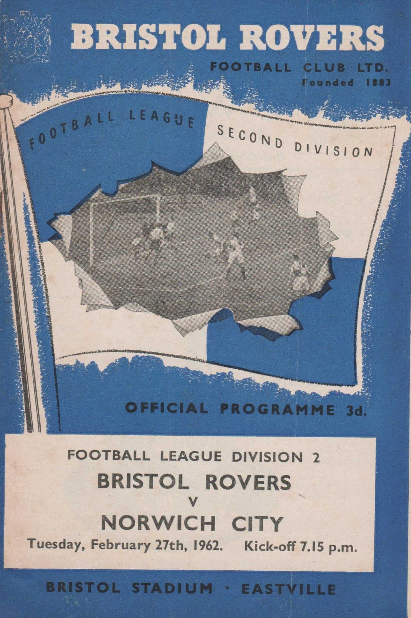 Match: Bristol Rovers v Norwich City Competition: League Division 2 Date: 27-Feb-1962 Comments: Rating: 4 Condition: Very good Weight in grams: 40