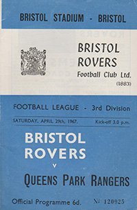 Match: Bristol Rovers v Queens Park Rangers Competition: League Division 3 Date: 29-04-1967 Comments: Rating: 4 Condition: Good Weight in grams: 40