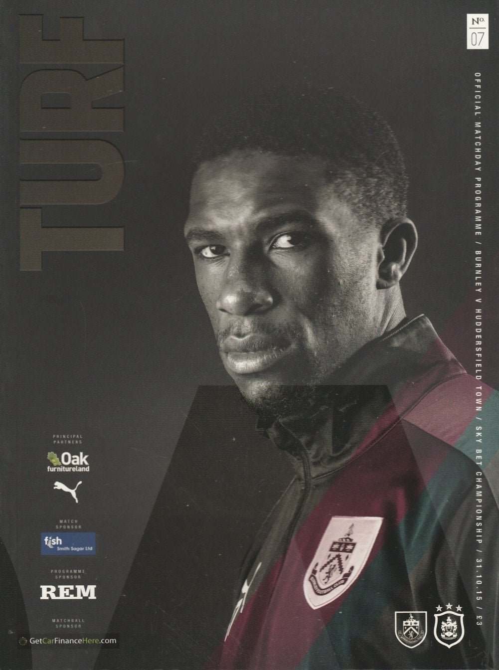 Match: Burnley v Huddersfield Town Competition: League Championship Date: 31-Oct-2015 Comments: Rating: 4 Condition: Very good Weight in grams: 240