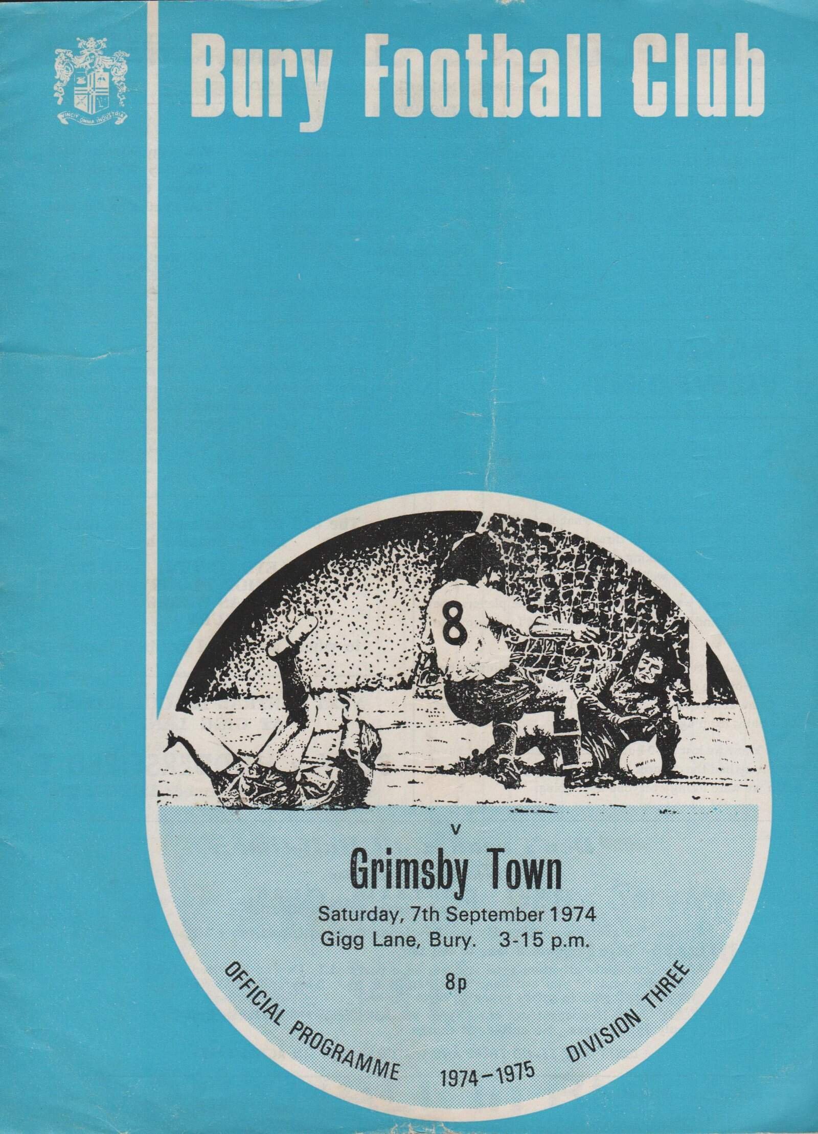 Match: Bury v Grimsby Town Competition: League Division 3 Date: 07-Sep-1974 Comments: Rating: 4 Condition: Very good Weight in grams: 80