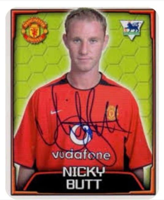 Title: Butt Nicky -397 Club: Manchester United Player: Nicky Butt Collection number: Merlin Premier League 2004 – 397 Rating: 4 Condition: Very good Weight in grams: 10