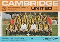 Match: Cambridge United v Cardiff City Competition: League Division 2 Date: 13-01-1979 Comments: Rating: 4 Condition: Very good Weight in grams: 60