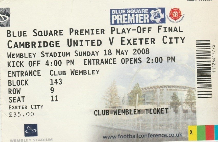 Match: Cambridge United v Exeter City Competition: Nationwide Conference Play off Final Date: 18-May-2008 Comments: Rating: 4 Condition: Very good Weight in grams: 10