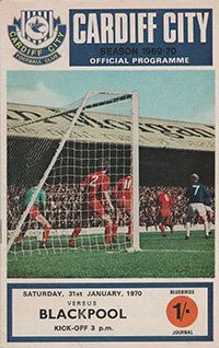 Match: Cardiff City v Blackpool Competition: League Division 2 Date: 31-01-1970 Comments: Rating: 3 Condition: Two small pen scribble marks on back page Weight in grams: 80