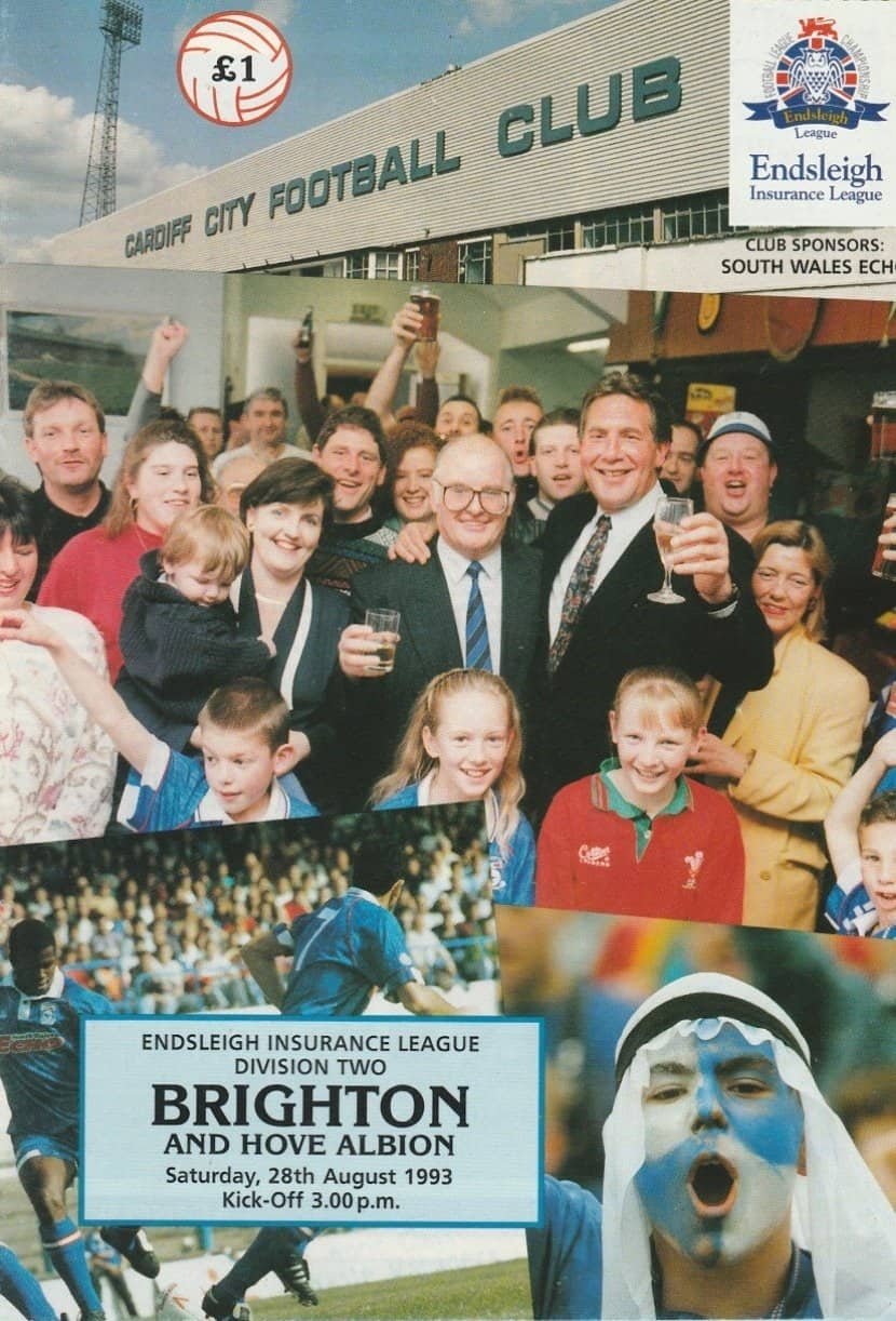 Match: Cardiff City v Brighton and Hove Albion Competition: League Division 2 Date: 28-Aug-1993 Comments: Rating: 4 Condition: Very good Weight in grams: 80