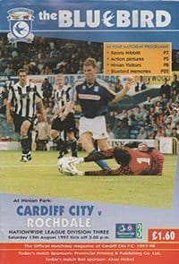 Match: Cardiff City v Rochdale Competition: League Division 3 Date: 13-09-1997 Comments: Wrong date on programme Rating: 3 Condition: Light rippling, scuffs on edge of front cover Weight in grams: 100